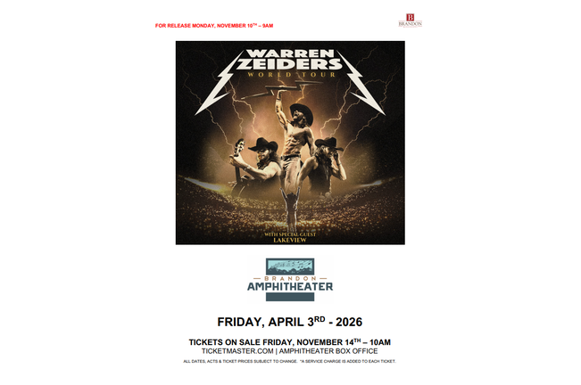 GET READY FOR THE WARREN ZEIDERS WORLD TOUR WITH SPECIAL GUEST LAKEVIEW, FRIDAY APRIL 3rd 7:30pm AT THE BRANDON, AMPHITHEATER. REGISTER HERE AND WIN THEM BEFORE YOU CAN BUY THEM!