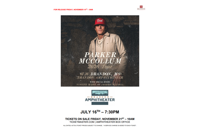 GET READY FOR THE PARKER McCOLLUM "2026 TOUR" JULY 16, 7:30 AT THE BRANDON AMPHITHEATER WITH SPECIAL GUEST VINCENT MASON AND JACKSON WENDELL. LOCK US IN TO WIM ON MISS 103!